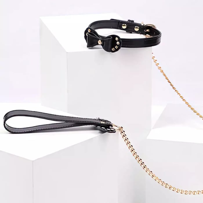 Coleira Íntima Rosa com Rebites e Corrente - YOUVIBE