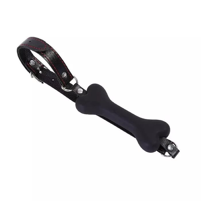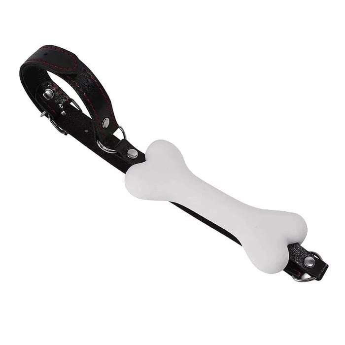 Mordaça bondage ajustável por meio de fivelas metálicas, confeccionada em couro sintético.